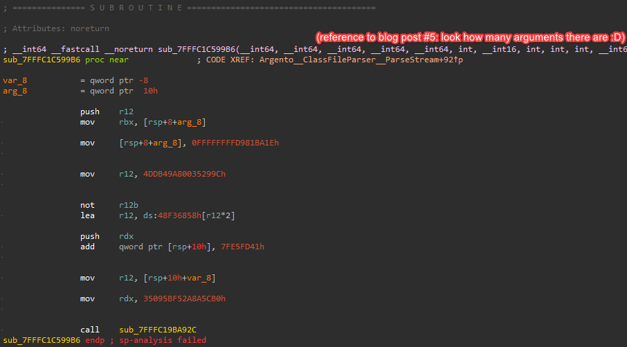 This function does a bunch of weird stuff and then calls another function. "But this function never returns!" - one would think.Indeed, in a normal function that does this,